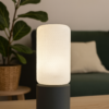 This table lamp is versatile: perfect as mood lighting in the living room , as a bedside nightlight , or as a decorative lamp on a dresser or desk . The combination of the playful blue color and the elegant white top makes it a real eye-catcher that blends effortlessly with various interior styles.